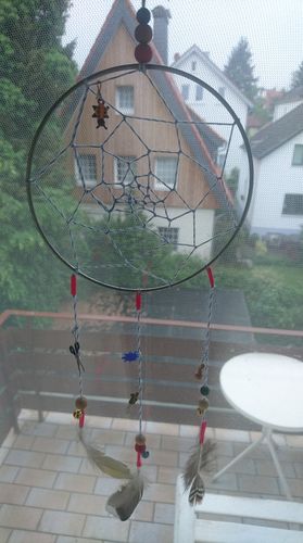 eine Schere, ein blauer Mond, ein Fotograf und ein Roboter, der aussieht wie ein Oscar (ja, der von der Verleihung) - was braucht ein(e) Spinne(r) (die übrigens eher wie ein Marienkäfer ausschaut) mehr für eine traumhafte Story? Diese Zutaten jedenfalls hängen an unserem wunderbaren Eichen-Geschichten-Spinner. Bleibt nach so viel Freude nur eine Frage übrig: Wer schreibt den passenden Text dazu?