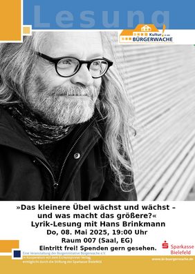 Mit Hans Brinkmann lispelt allerdings ein überaus kluger Kopf seine lustig listigen Reflexionen ins Mikrofon. Als scharfer Beobachter, als genauer Zuhörer, Zuschauer, Leser schnappt er auf, was sie so von sich gibt, diese Gesellschaft und denkt weiter und zu Ende, entlarvt also letztlich den alltäglichen Wahnsinn, der uns umgibt: sprachlich, politisch. Das könnte nun alles sehr traurig stimmen – wenn Brinkmann es nicht derart brillant witzig zu Papier brächte. Gesellschaftskritik, vorgetragen mit leicht sächsischem Zungenschlag, nicht immer (nur), aber immer wieder zum Lachen, das freilich im Halse stecken bleibt, mitunter. Köstlich unterhaltsam, anregend klug, zudem ein wunderbarer Auftakt, um gemeinsam ins Gespräch zu kommen, über dies und das, über Kunst und Politik, über Literatur und Wirtschaft, kurzum über alles, was derzeit im Argen liegt.
